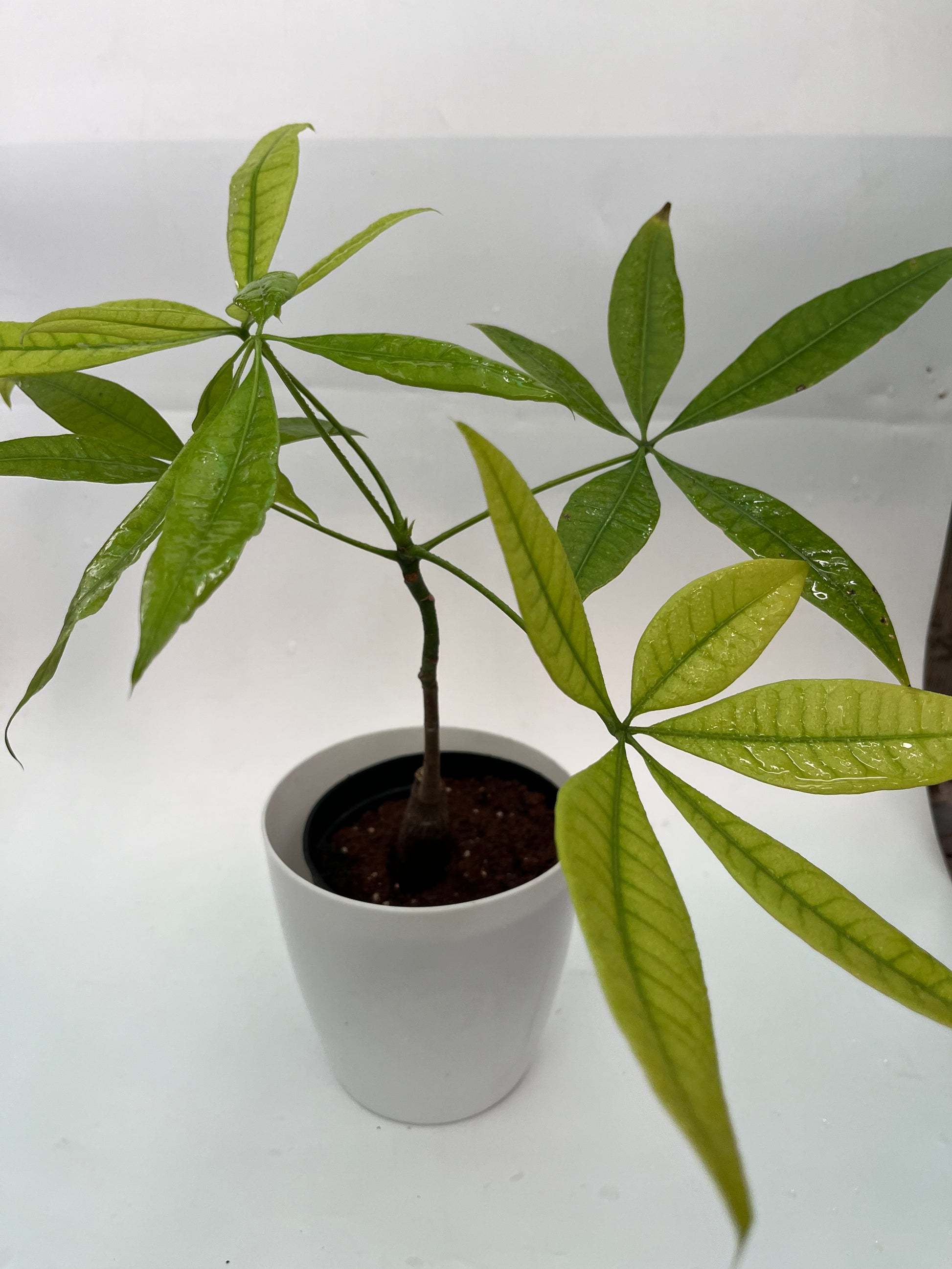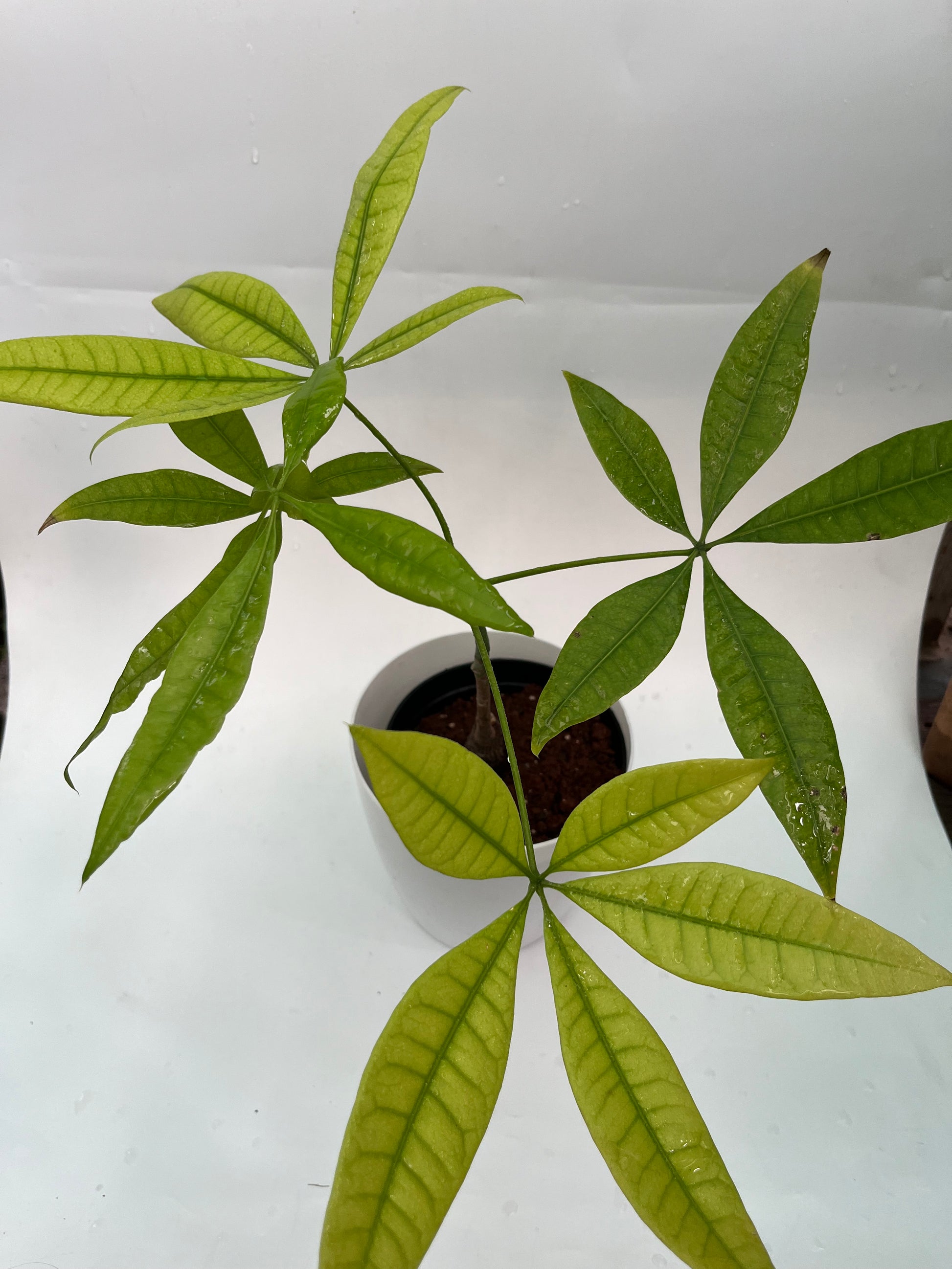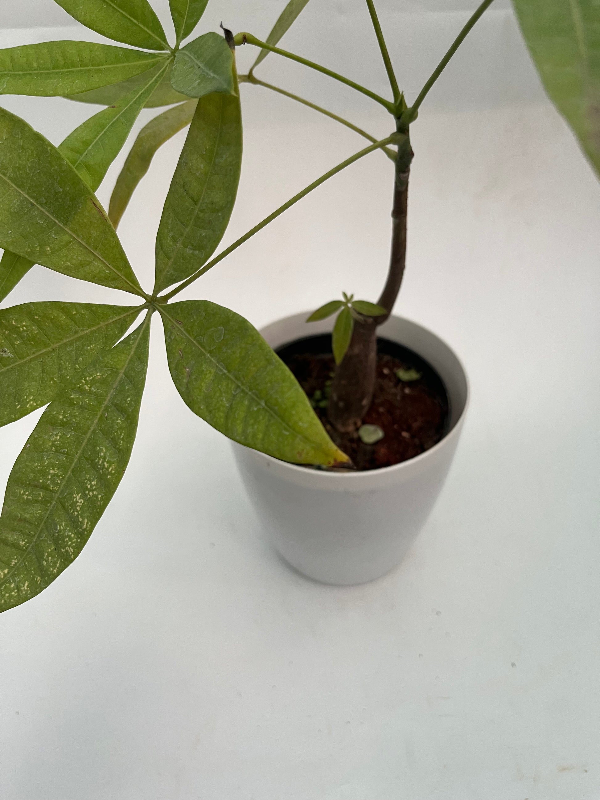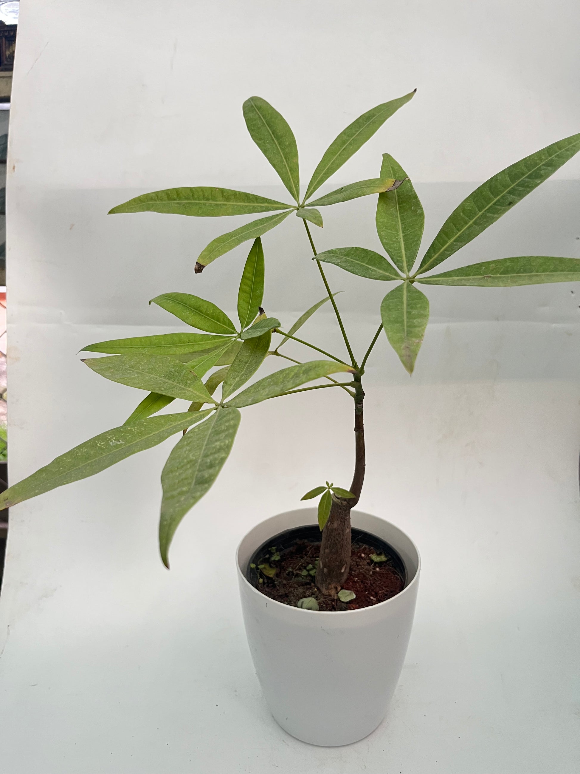 4. Often features a braided trunk and palmate leaves, also known as Money Tree.